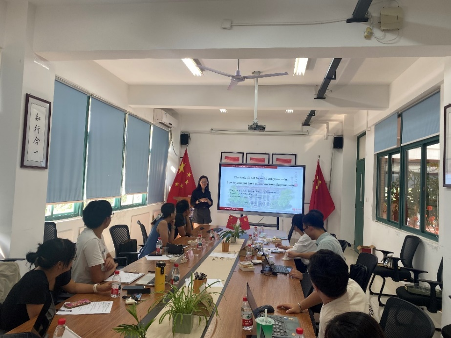 在下午的会议中,邓贵川老师先汇报《数字技术能够突破就业结构服务化下的增长困境吗?——宏观效应与微观机制》,与会学者就理论模型设定、政策试点内容、数字技术的具体影响等问题进行了激烈的探讨。随后,范尧尧老师汇报了《The Dark Side of Financial Conglomerates: How Investment Bank Affiliation Hurts Fund Investors》,与会学者就政策内容、识别策略调整等问题展开了深入探讨。