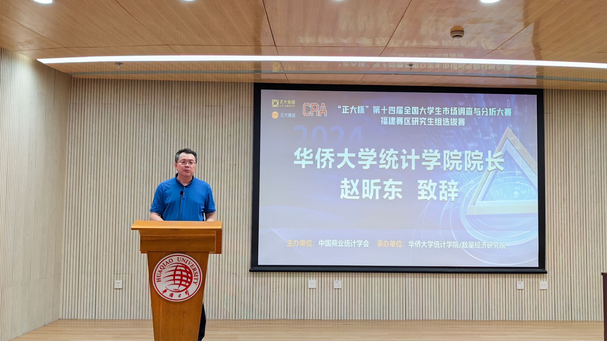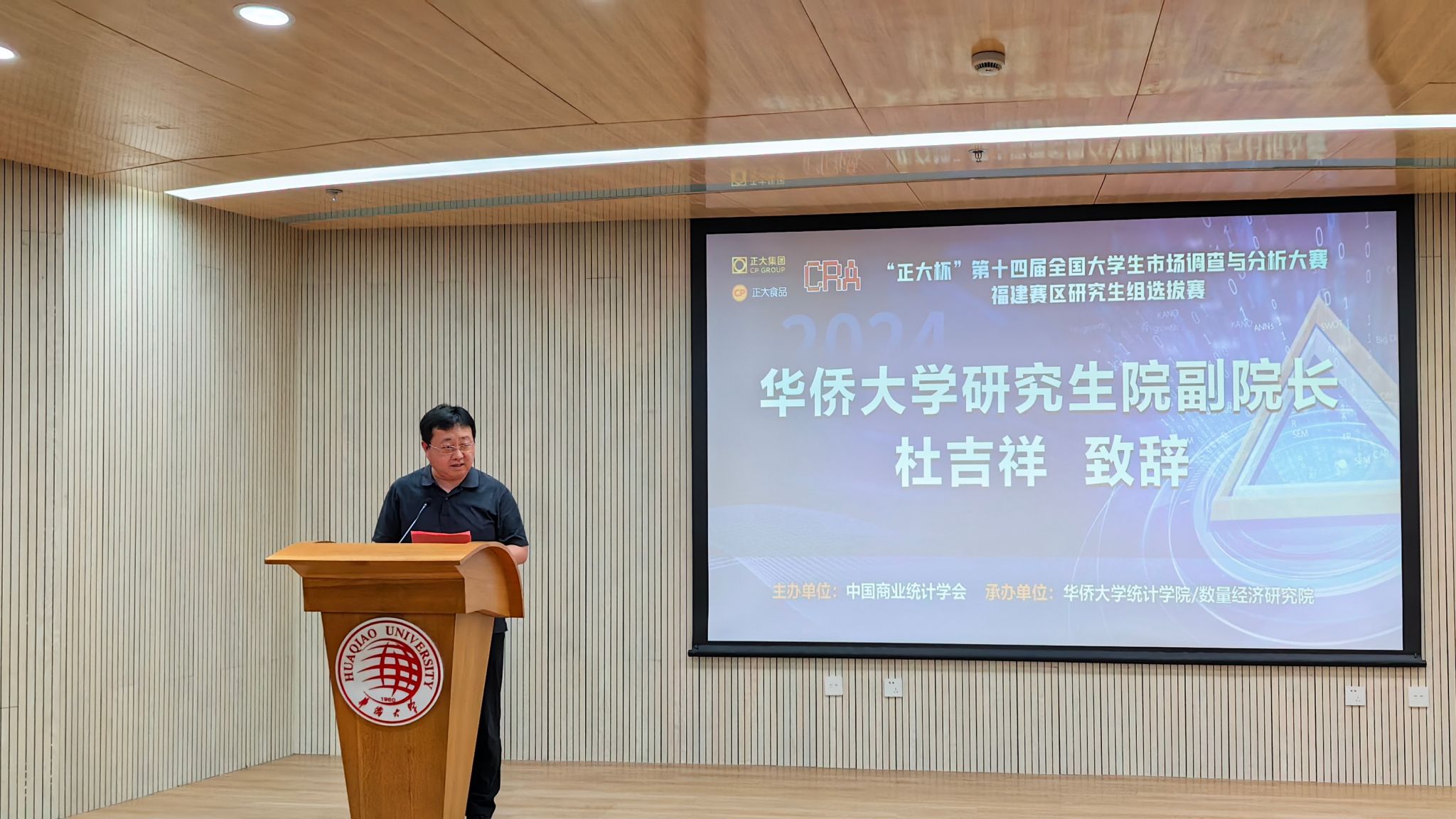 2024年4月15日,“正大杯”第十四届全国大学生市场调查与分析大赛福建赛区研究生组选拔赛决赛(下面简称“省赛决赛”)在华侨大学成功举办。本次省赛决赛由中国商业统计学会主办,华侨大学统计学院/数量经济研究院承办,华侨大学统计学院副院长张五六主持。