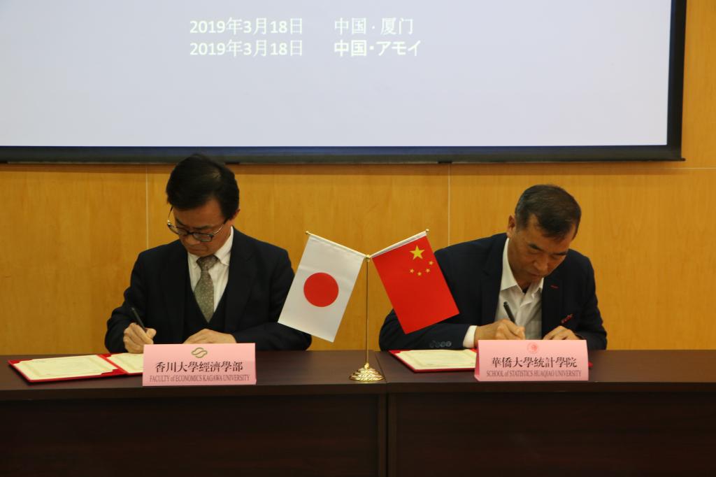 随后,统计学院院长胡日东与日本香川大学经济学部系部长佐藤 忍正式签订了两所学院的研究教育交流协议。根据协议,两院系之间每年将派遣1-2名本科生或研究生进行为期一年以内的交换学习,交换学习期间双方免收申请手续费及学费。除了学生层面的交流,协议还鼓励双方专业教师之间的交流互访。此次签订的研究教育协议将使统计学院教育教学的国际化水平再上一个台阶。