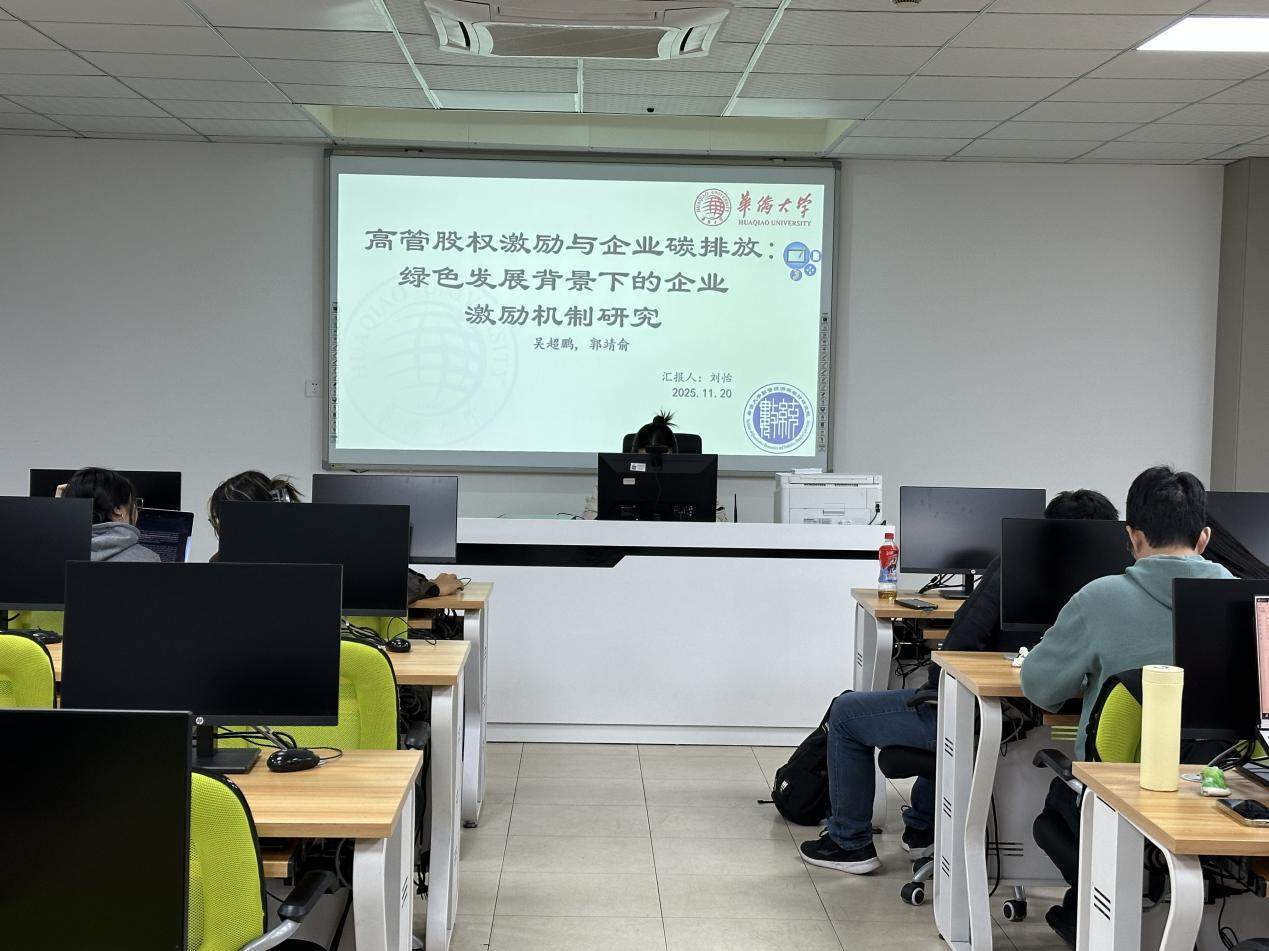 为营造良好学术氛围、切实推进科研育人、提升学生学术科研能力,数量经济与统计研究院产业经济学术团队于11月20日在应用统计与数据科学实验室(F3-401)开展了本学年第五次学术论文阅读分享会。我院的李泽扬副教授、陈锋博士、曹增栋博士及华侨华人与区域国别研究院的李蒙博士以及部分硕博研究生。本次分享会的汇报人为2024级应用统计专业杜菁同学和2025级应用经济学专业刘怡同学。